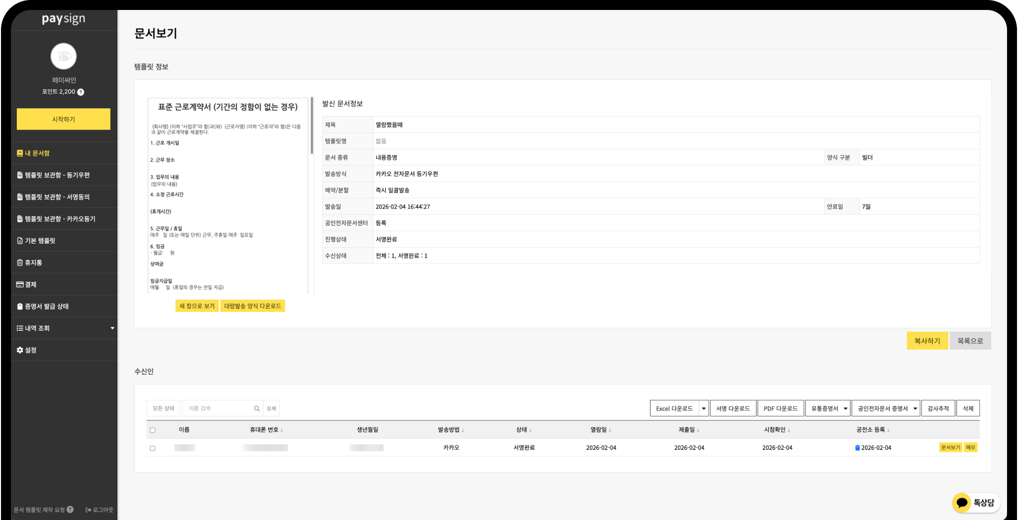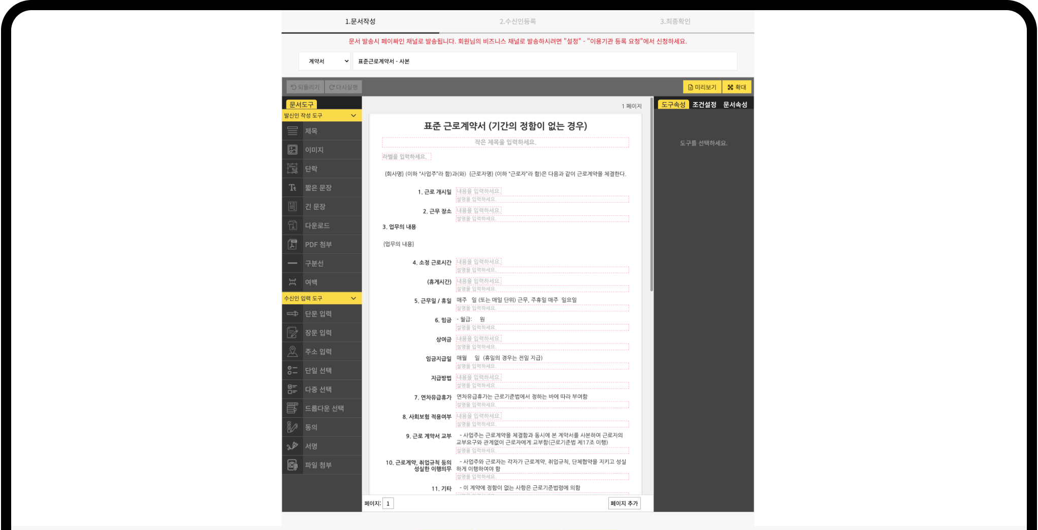 계약서, 동의서, 통지서, 안내문 등 다양한 문서를 보내보세요.