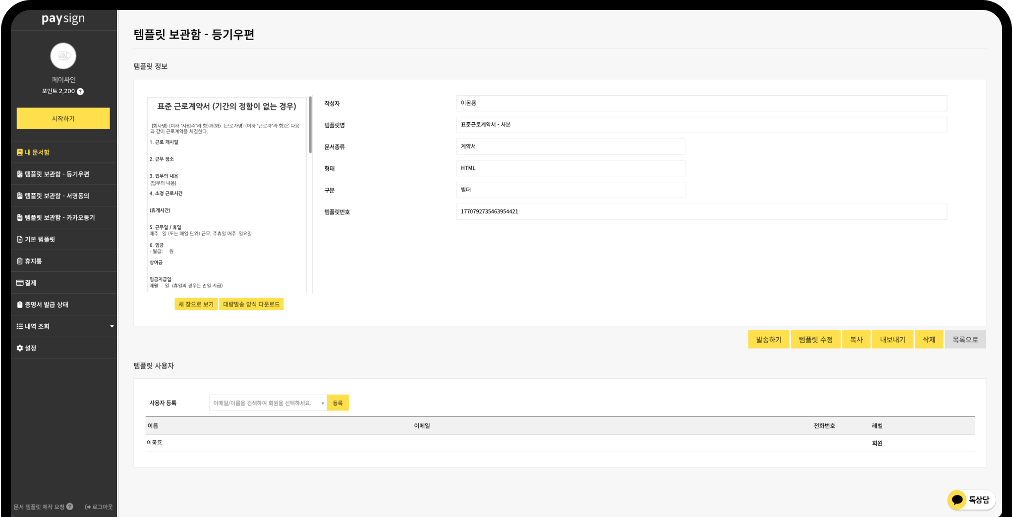 보낸 문서나 저장한 템플릿을 한곳에 모아